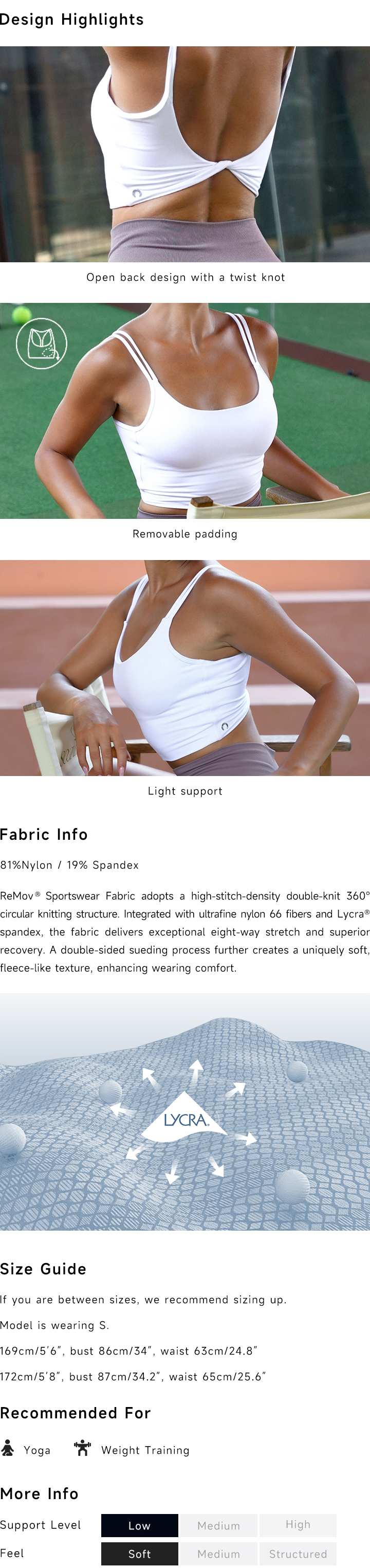 The back features a large open back design combined with a twist knot, highlighting the back's contours. The soft, skin-friendly fabric ensures comfortable wear throughout the day.