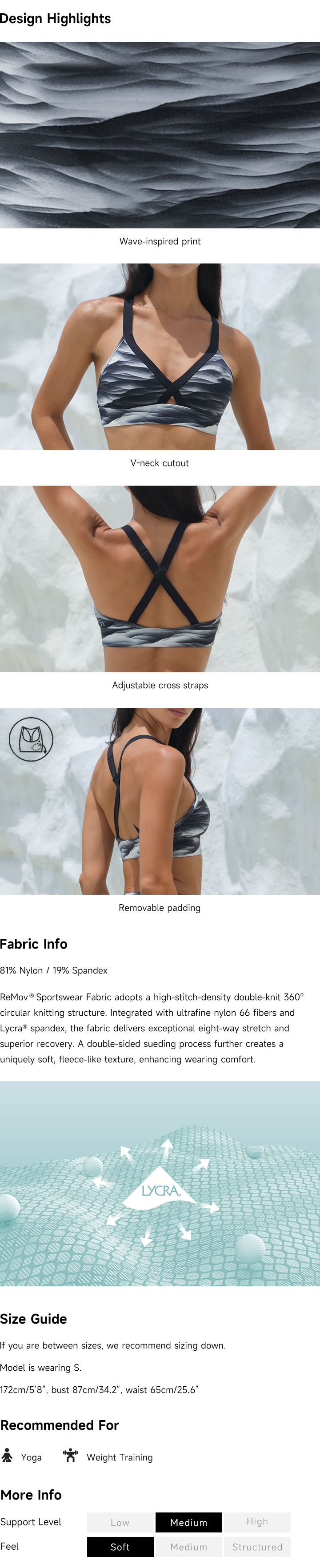 The Cross Wave Sports Bra balances movement and expression with a fluid, modern character. Medium support and adaptive stretch create a comfortable wearing experience, while the wave-like design adds quiet visual movement. Easy to wear during light training or casual active moments, it delivers a composed look with understated energy.