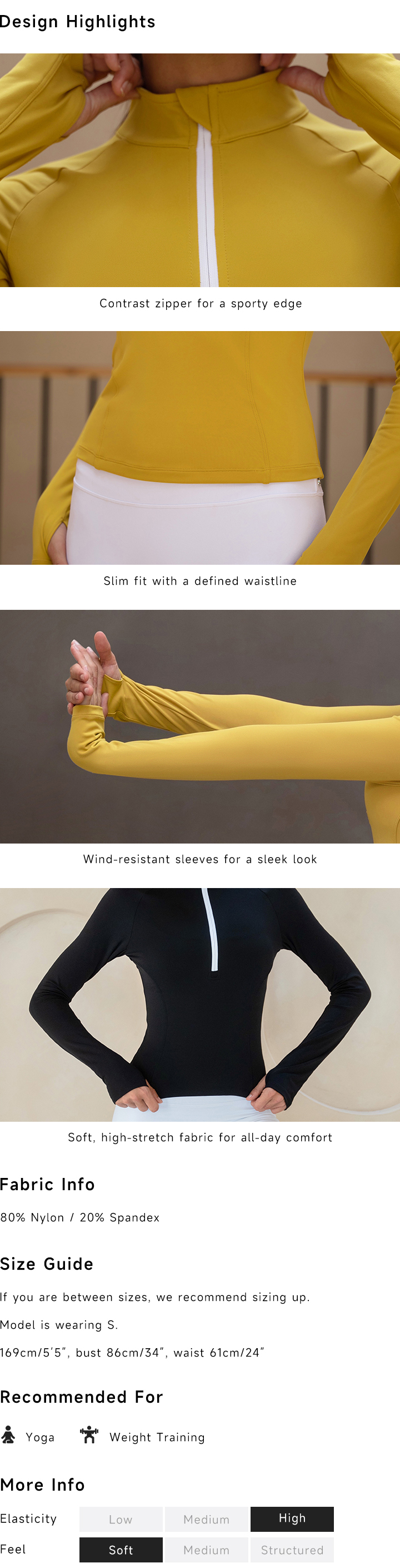 From workouts to daily wear, this sleek long-sleeve keeps up. A bold contrast zipper, sculpting fit, and wind-resistant sleeves add style and function, while the soft, stretchy fabric moves effortlessly with you.