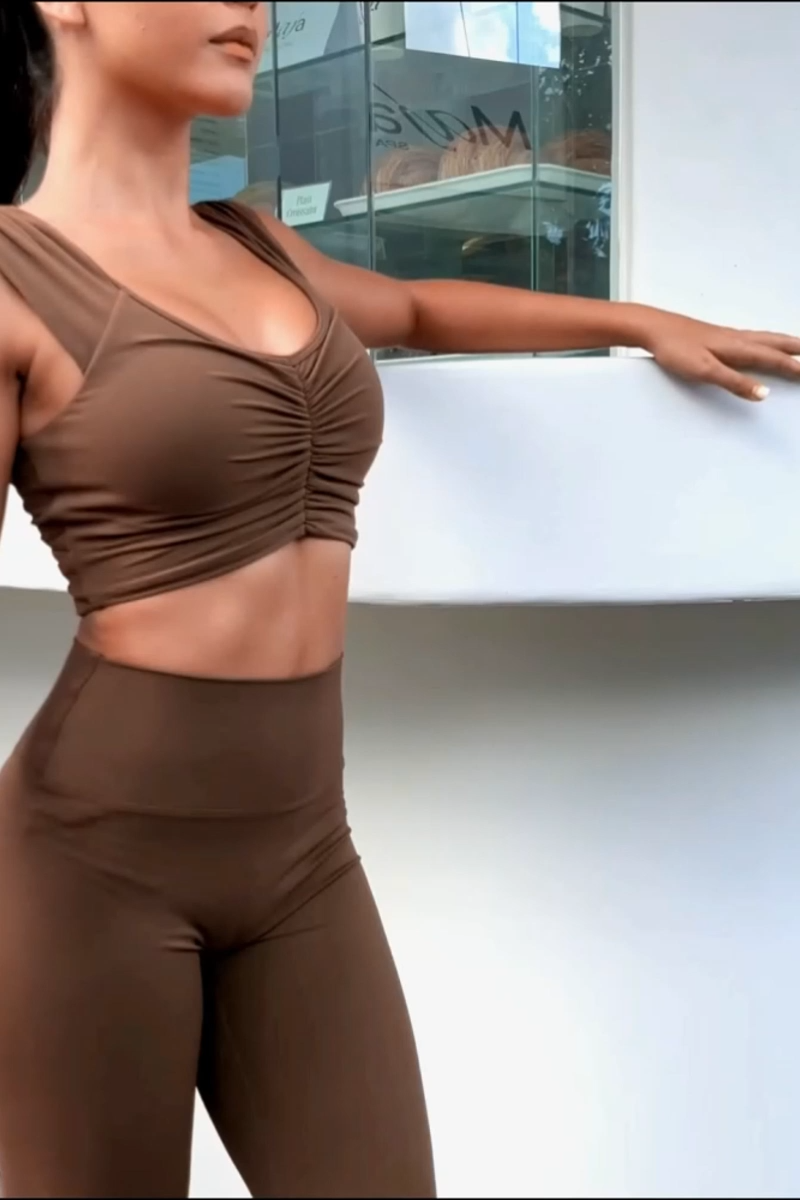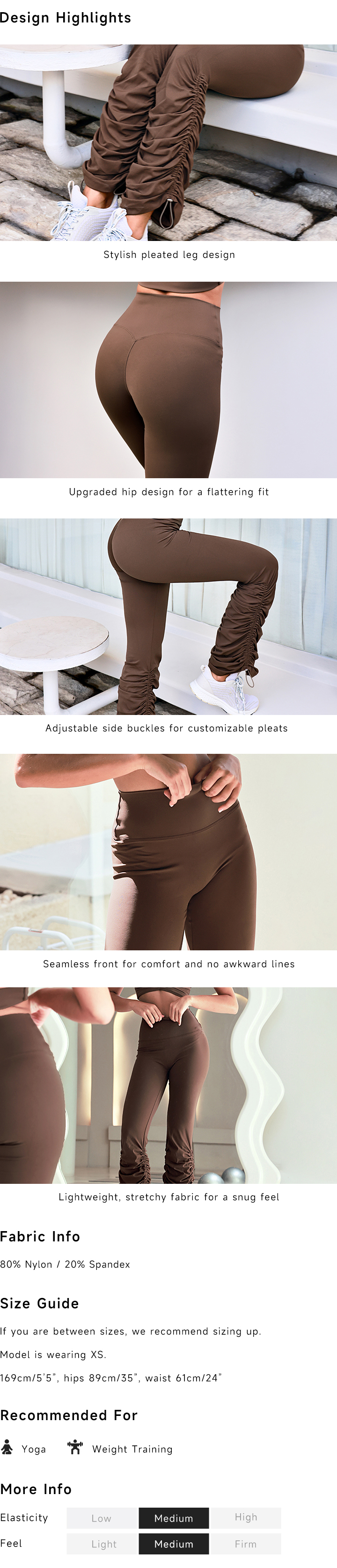 The designer blends pleats with athletic leggings to create stylish, sporty "stacked pants" that stand out in both the gym and on the street. With adjustable side buckles, an upgraded hip design, and a seamless front, these leggings offer a flattering fit and unique look. The lightweight, stretchy fabric ensures comfort, while the metallic logo adds a sleek touch.