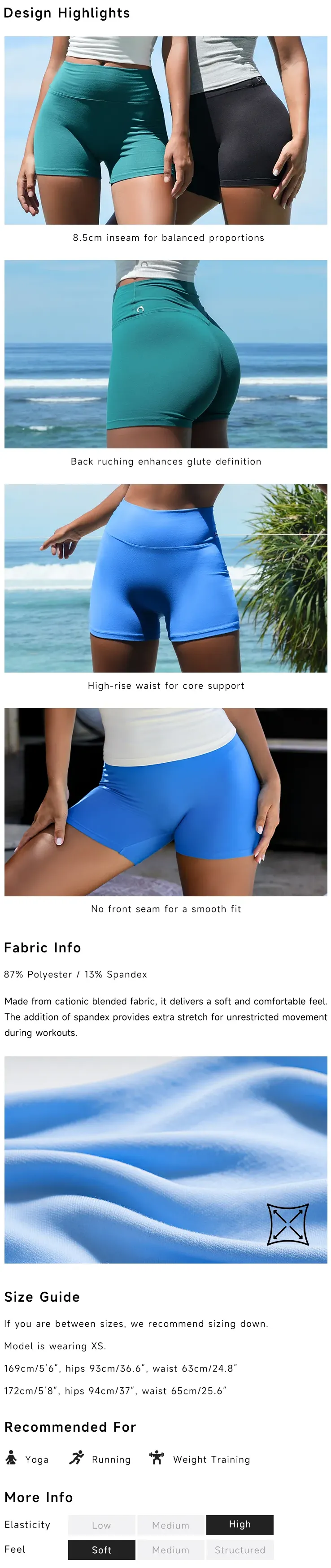 From lifting days to cardio sessions, these shorts are built to flatter and perform. The 8.5cm inseam creates a leg-lengthening look, while back ruching shapes your glutes with every move. A high-rise waistband offers gentle compression, and the seamless front keeps you focused—no fuss, just function.