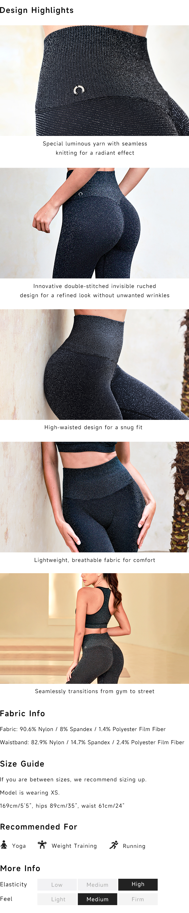 The designer said, "I've always wanted a pair of leggings that shine like the stars. When the moonlight is bright, it glows softly across the body like a lunar radiance. When the sunlight is dazzling, it sparkles like diamonds on display.