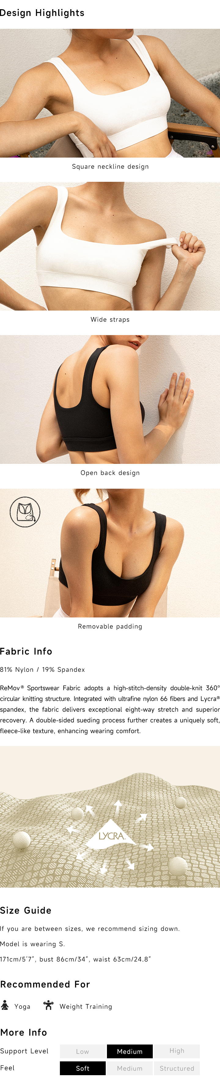 The Square Sports Bra pairs streamlined style with the perfect balance of comfort and support, taking you from training sessions to casual outings and weekend adventures with ease. It keeps you comfortable and stylish through every moment, whether you're breaking a sweat or winding down.