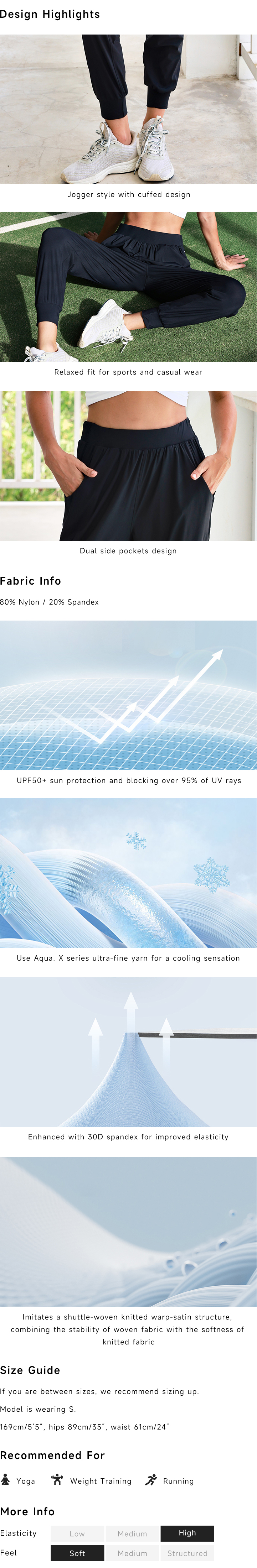 The product is the jogger style with a cuffed design for a clean and sharp look. It's a relaxed fit for sports and casual wear.