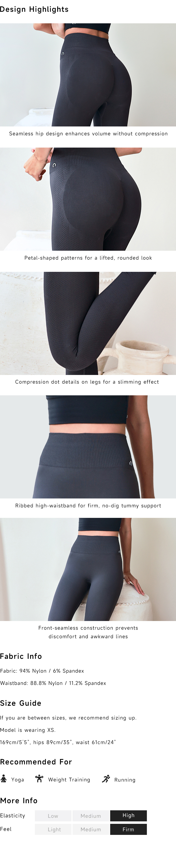 Designed for both performance and aesthetics, these seamless leggings provide enhanced shape and comfort. The petal-inspired patterns accentuate the hips with a lifting effect, while the ribbed high-density waistband offers secure tummy control. Featuring a front-seamless design, they ensure a flattering, smooth fit perfect for any workout or casual wear.
