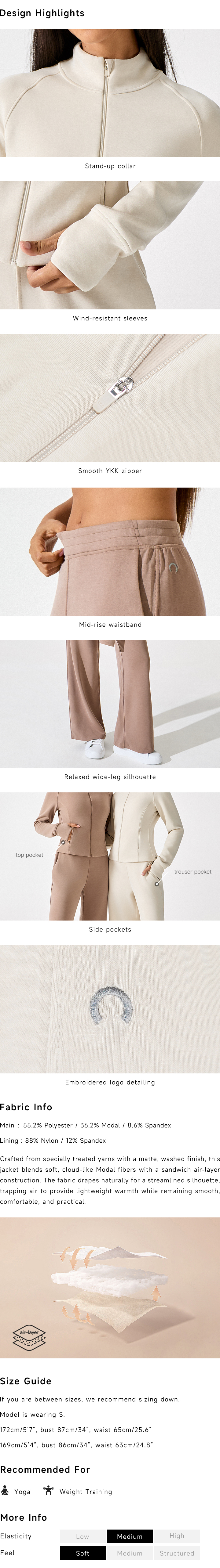 The Flow Wide Pants feature a relaxed, easygoing fit, perfect for studio sessions or casual meet-ups. The mid-rise waistband and side pockets combine functionality with style, while pairing effortlessly with the matching jacket for a coordinated, athletic-inspired look.