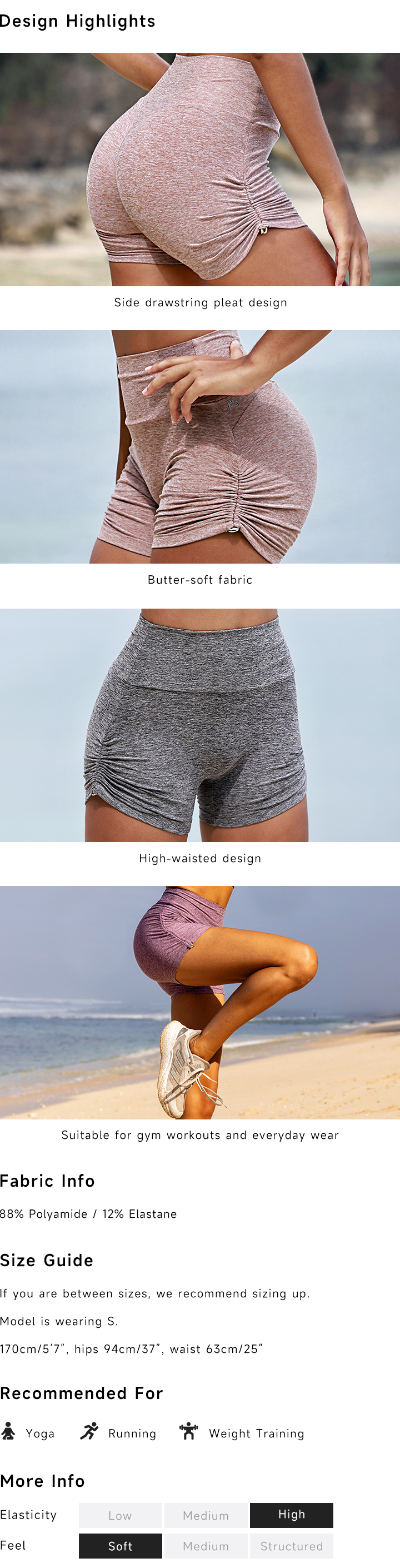 The Toggle shorts feature a side drawstring design for easy adjustment, providing a versatile wearing experience. It also features a high-waisted design for added comfort during physical activities.
