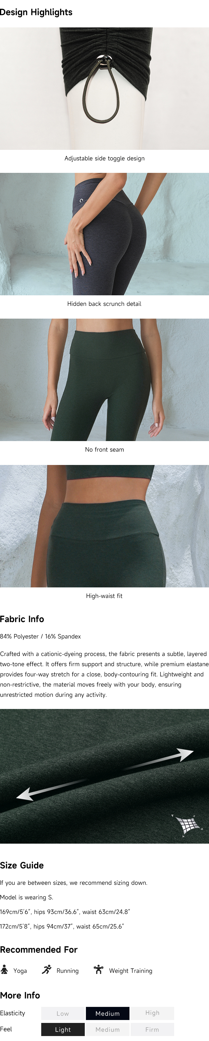 Designed for ease and versatility, the Toggle Leggings offer a smooth, high-rise fit with thoughtful shaping that flatters the body. The adjustable side detail adds visual interest while maintaining comfort, making them a natural choice for relaxed workouts, active days, and effortless off-duty styling.