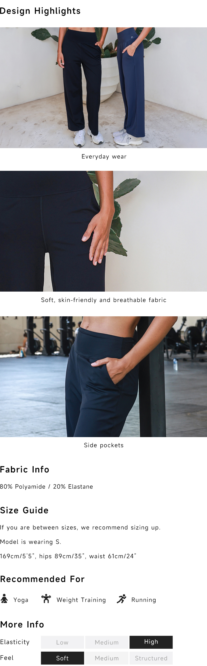 Wide pants are suitable for everyday wear, featuring a loose, straight-leg cut that provides comfort throughout the day.