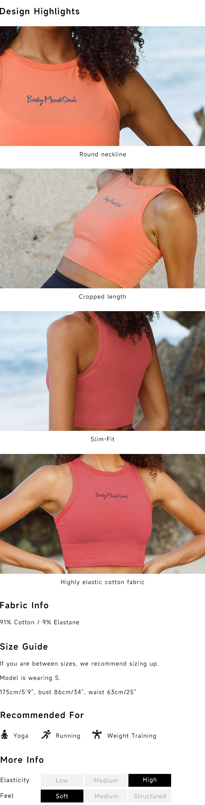 The BMS Tank is made from high elastic cotton fabric, with your comfort in mind. Its slim-fit, crop top cut is not only flattering, but also allows for ease of movement during your toughest gym sessions. Embrace the Road to Reshape with your "Body Mind Soul”.